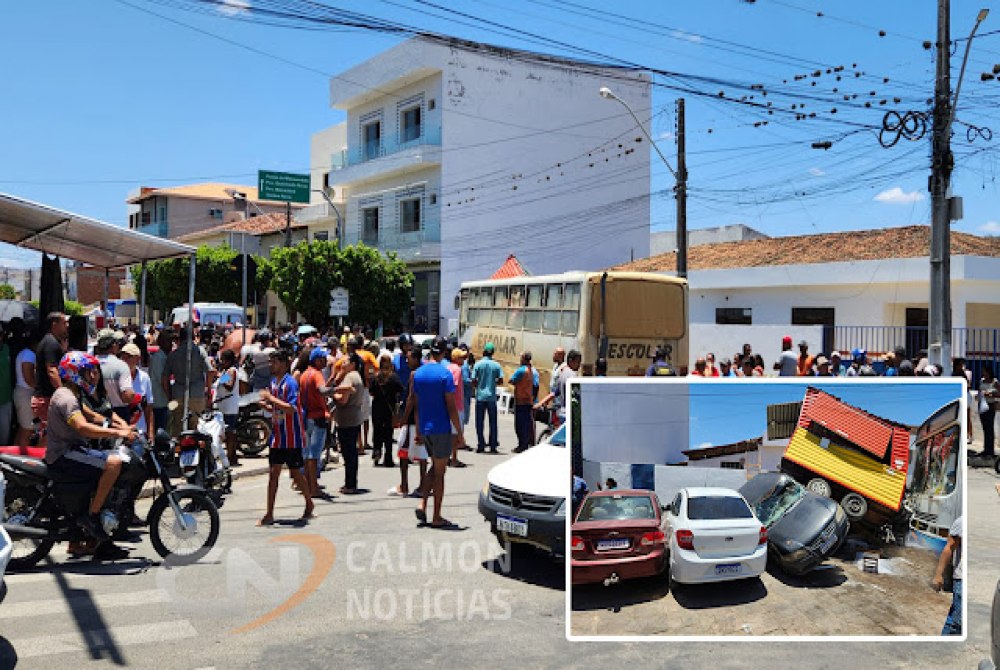 Na manhã desta quinta-feira, 30 de outubro de 2025, um ônibus descontrolado atingiu três carros, um treiller e deixou uma pessoa morta e outras duas feridas na rua Ipiranga, centro de Miguel Calmon.