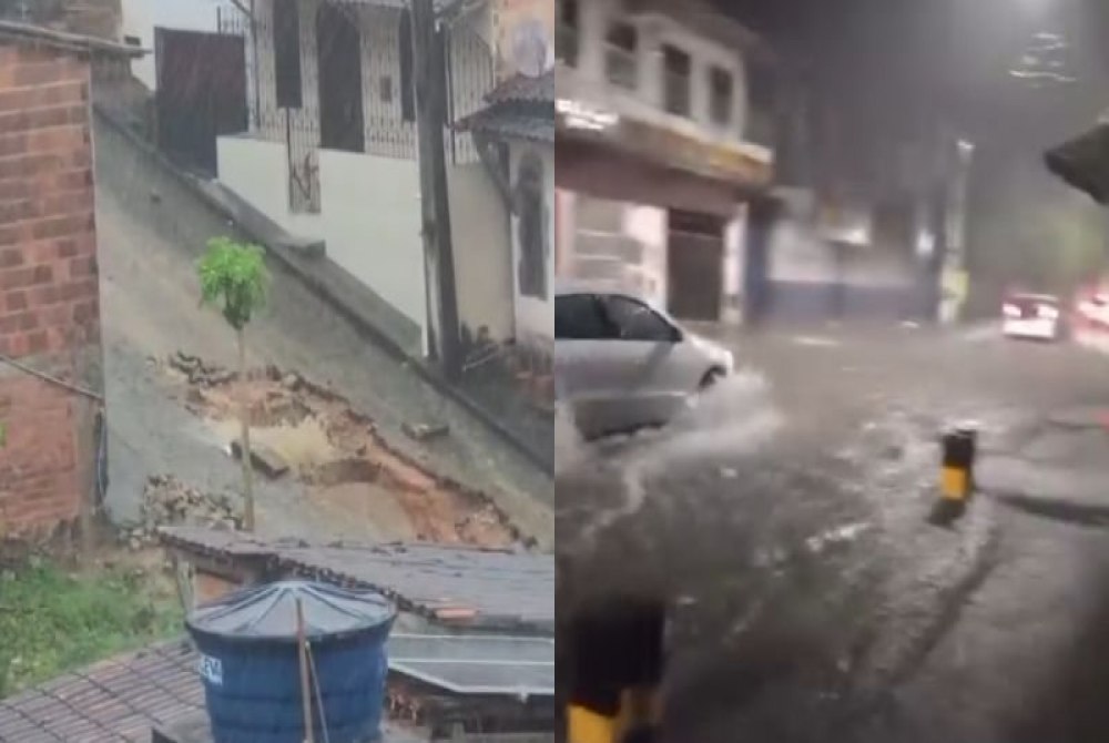Imagens que circulam nas redes sociais mostram ruas completamente tomadas pela água, que invadiu residências e comércios, causando prejuízos. Em Teolândia, no baixo sul da Bahia, uma enorme cratera se abriu no meio de uma rua, impedindo a passagem de veículos e oferecendo risco a pedestres.