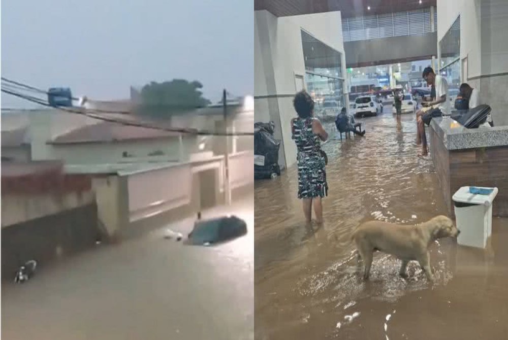 Além da rodoviária, outros pontos da cidade também foram impactados. Em diferentes vídeos, é possível ver carros parcialmente tomados pela água, evidenciando alagamentos em vias urbanas e dificultando o tráfego.