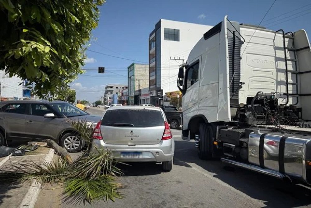 Um acidente envolvendo dois carros de passeio e uma carreta foi registrado no início da tarde desta segunda-feira (05), na Avenida ACM, no centro de Capim Grosso, e deixou o trânsito lento no local.