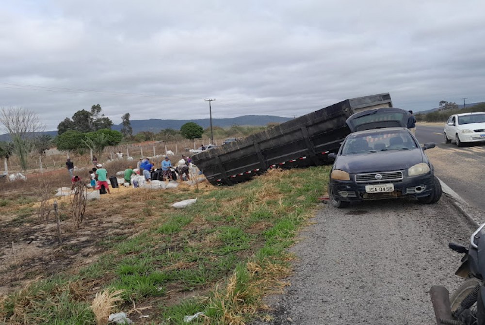 Na manhã deste sábado, 26 de setembro de 2025, a parte traseira de uma carreta bitrem tombou na BR 324, altura da Jureminha, próximo ao Distrito de Novo Paraíso de Jacobina.