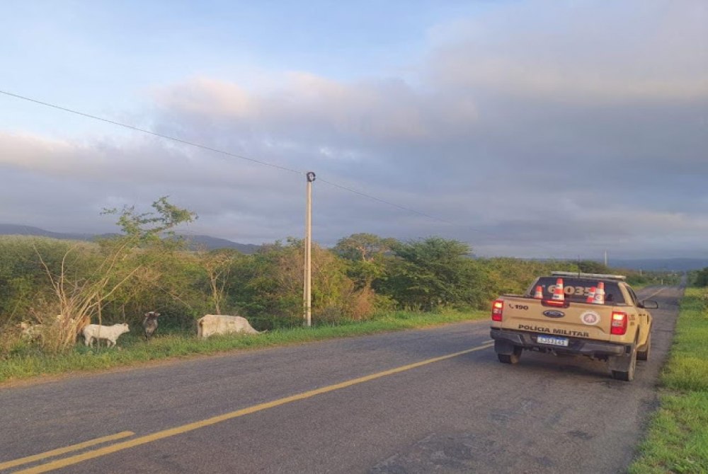 Durante o patrulhamento no km 20, nas proximidades do povoado de Lages, a guarnição identificou bovinos soltos sobre a pista, situação que configurava risco iminente de acidentes. De imediato, a equipe realizou a retirada dos animais e os conduziu a uma área segura, restabelecendo a normalidade do tráfego e prevenindo possíveis ocorrências.