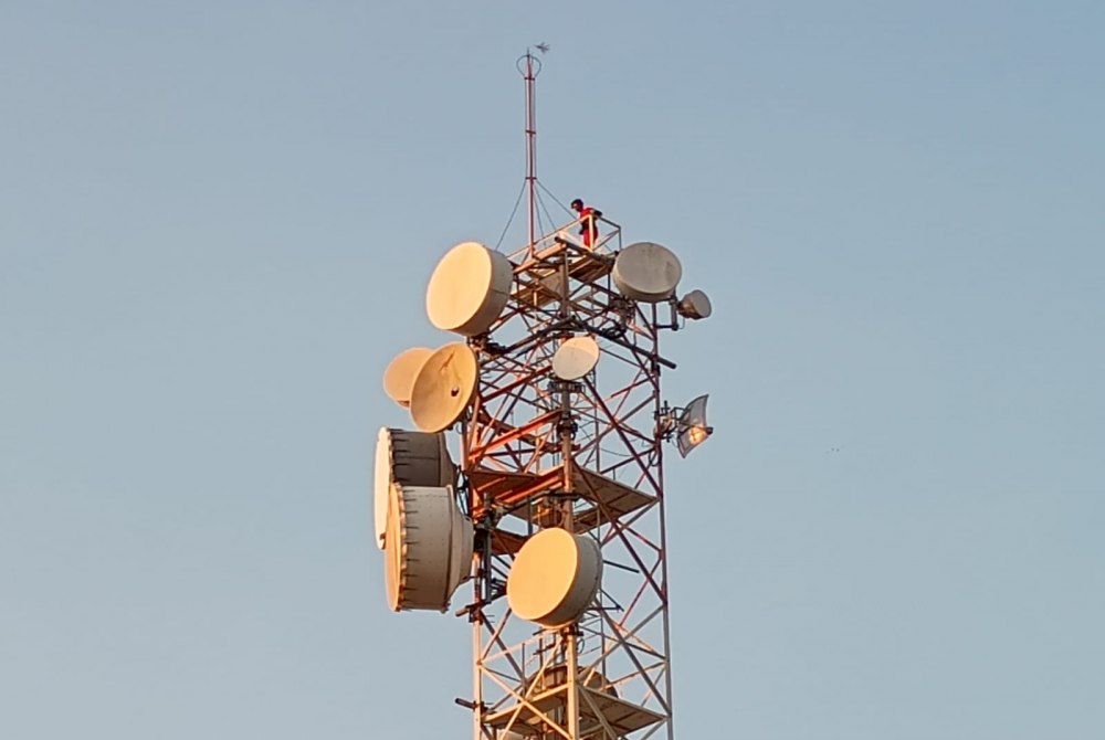 No final da tarde desta quarta-feira (31), registramos que um homem, ainda não identificado, subiu em uma torro existente no Bairro Oliveira, segundo ele, com o propósito de se atirar do topo da estrutura.