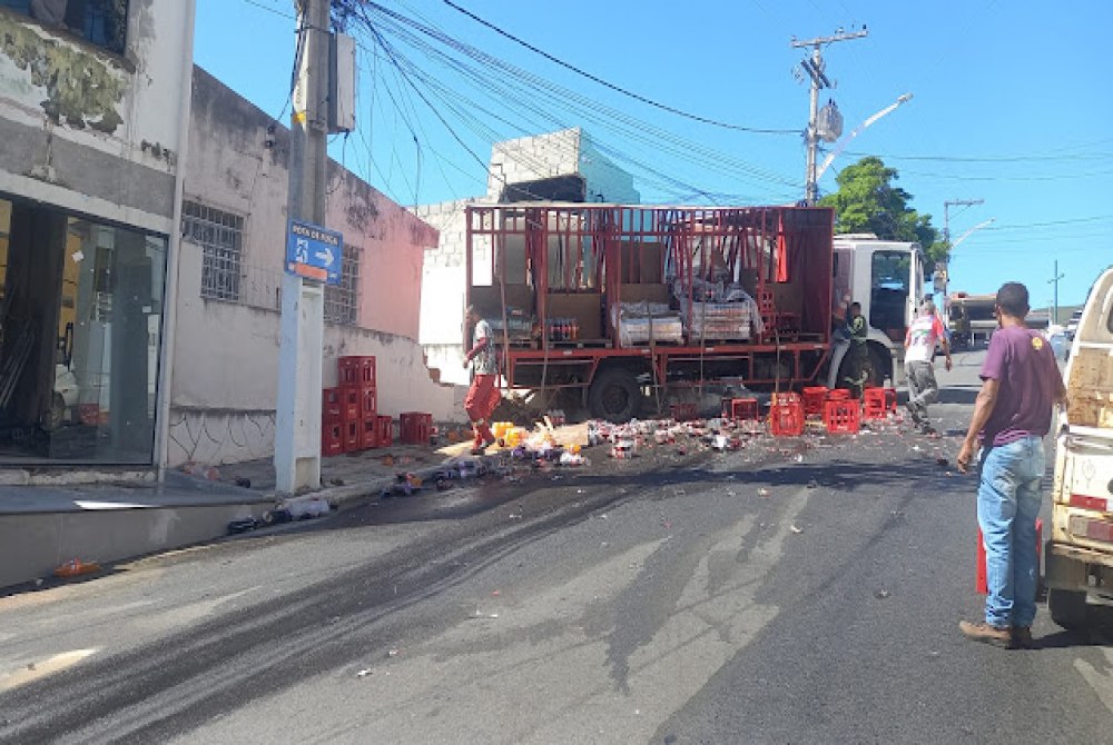 Na tarde desta sexta-feira, 06 de fevereiro de 2026, foi registrado um acidente envolvendo um caminhão de uma distribuidora de bebidas na Rua JJ Gouveia, no bairro da Missão, em Jacobina.
