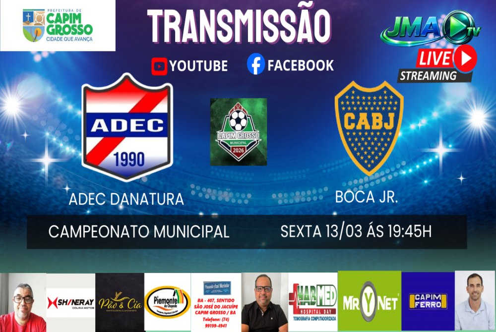 O Campeonato Municipal de Futebol de Capim Grosso terá prosseguimento na noite desta sexta-feira (13), com a partida ADEC Danatura (Caiçarense) x Boca Jr. Com início previsto para as 19:45 min.