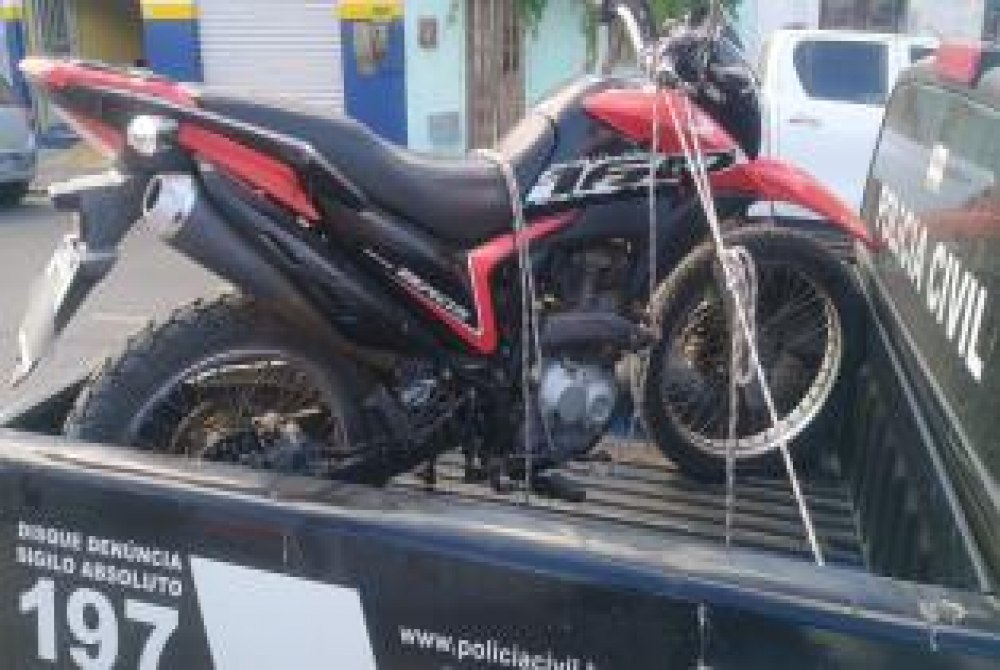 Uma motocicleta com suspeita de adulteração, um aparelho celular, três armas de fogo, entre elas uma espingarda calibre 12 e uma pistola semiautomática, munições, porções de cocaína, uma balança e três mil pinos utilizados para acondicionamento de entorpecentes.