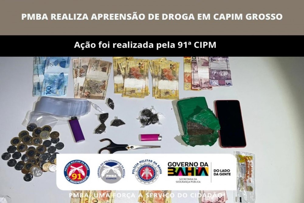 No dia 04 de abril, durante a realização da Operação Semana Santa, no município de Capim Grosso, com intensificação do policiamento ostensivo e realização de rondas e abordagens, uma guarnição da 91ª CIPM prendeu em flagrante delito um indivíduo por tráfico de drogas.